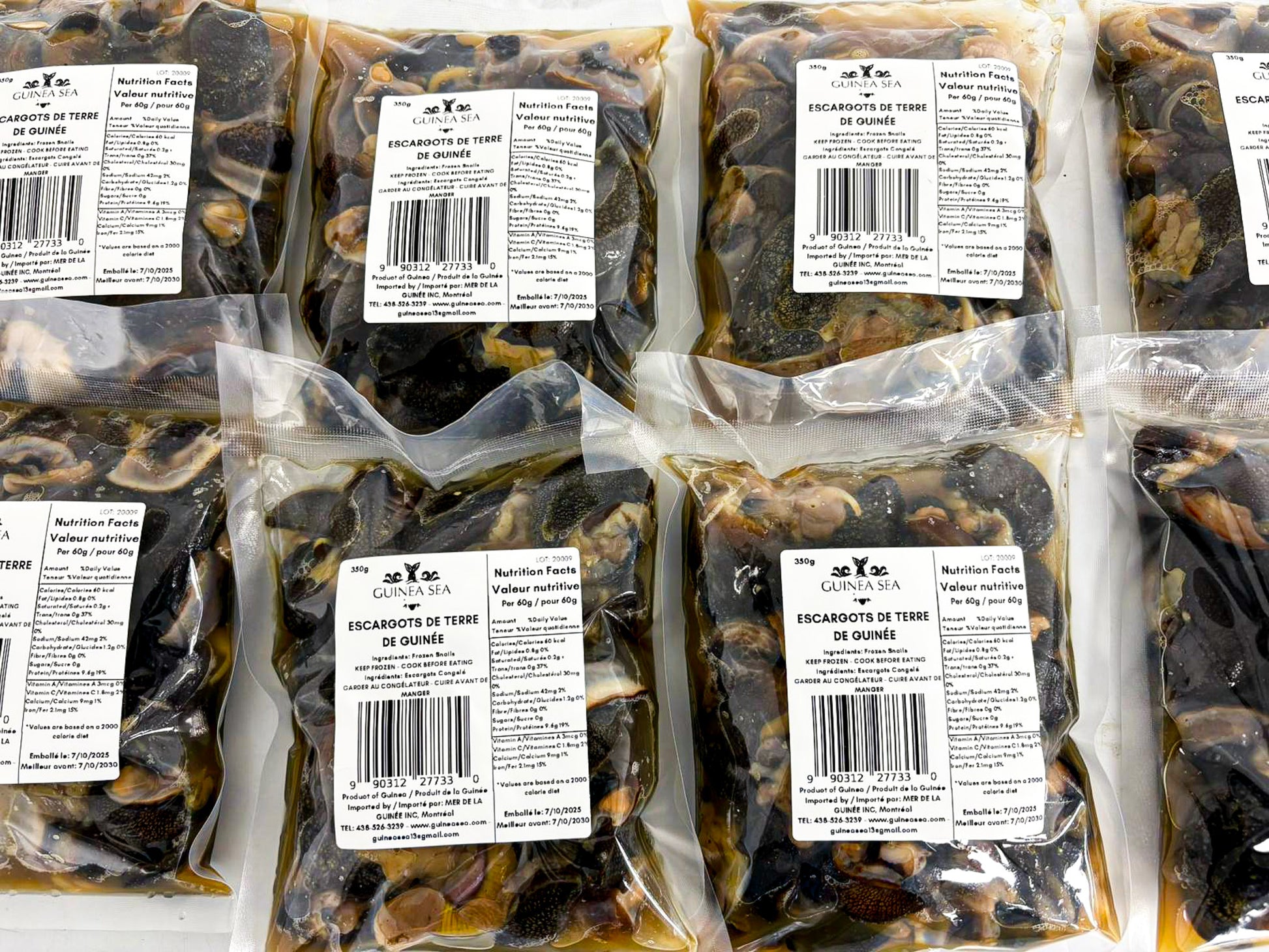 Frozen African land snails from Guinea are a delicacy known for their rich, savory taste and tender texture. These snails are naturally high in protein and low in fat, offering a nutritious source of lean meat.